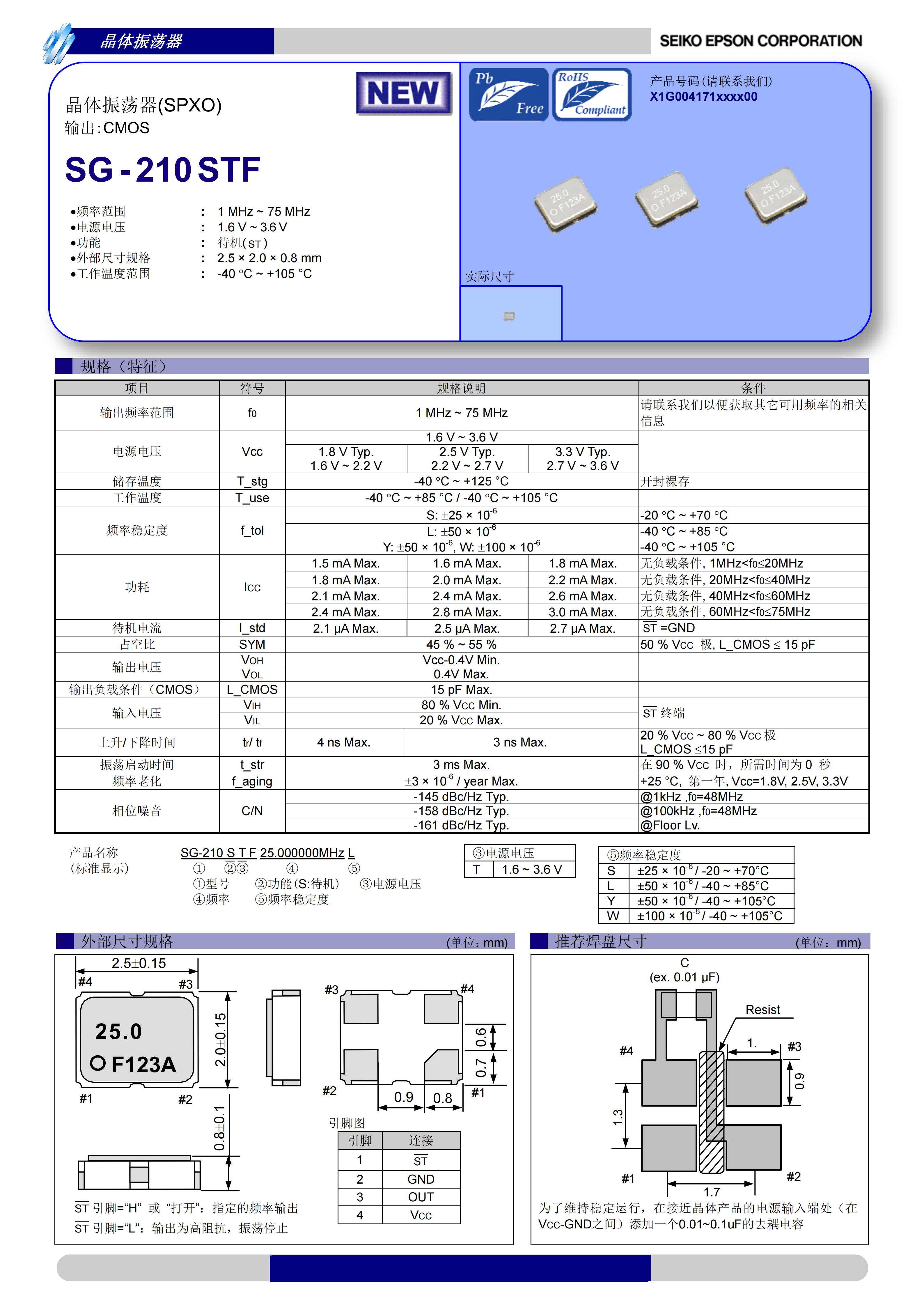 | X1G004171003300 | SG-210STF | 25MHz | 1.62 to 3.63 V | -40 to +85 °C | 50PPM | 加科電子 |
