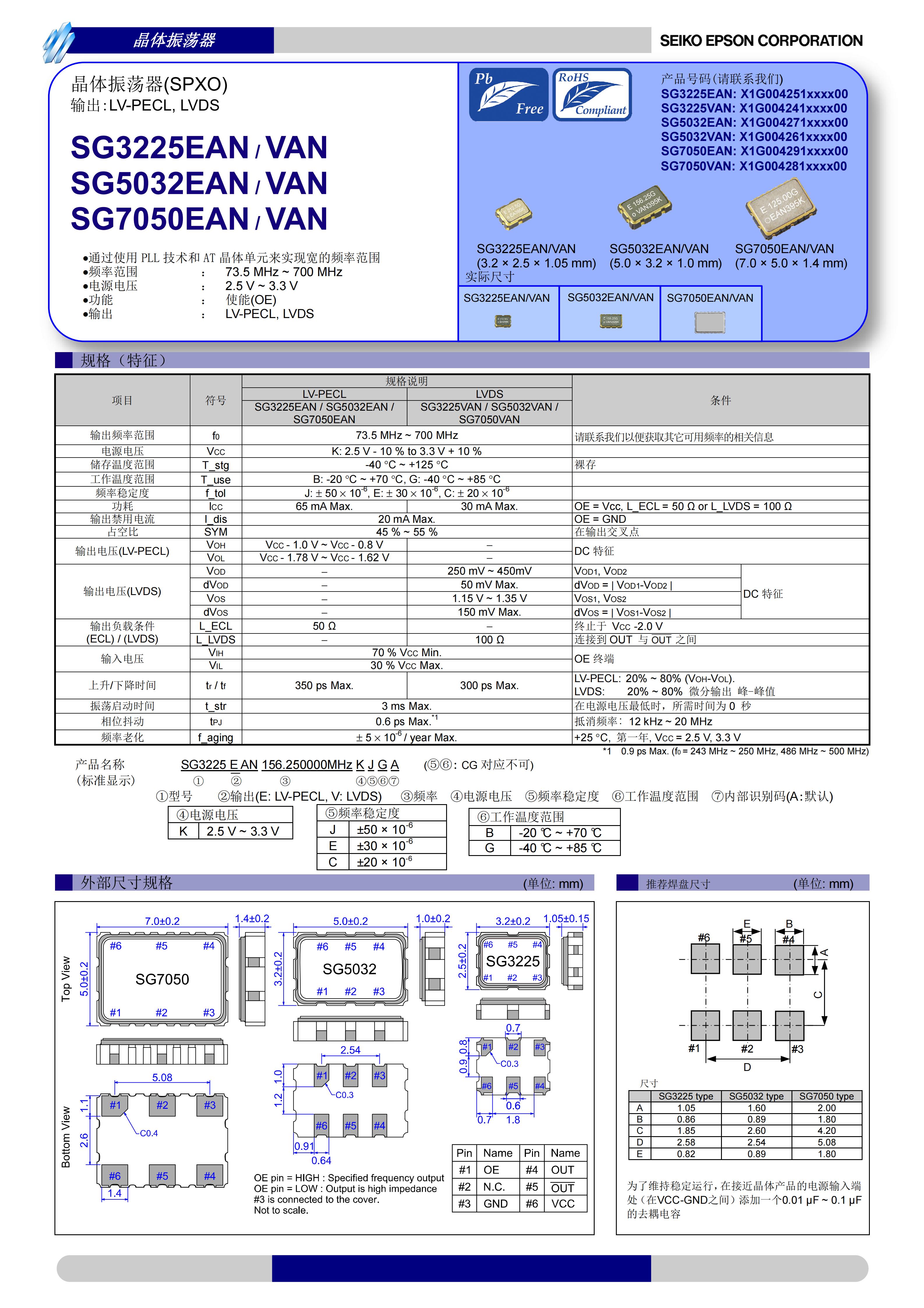 | SG5032VAN 156.250000M-KJGA3 | SG5032VAN | 156.25MHz | LVDS | 2.5V ~ 3.3V | -40°C ~ 85°C | 50PPM |