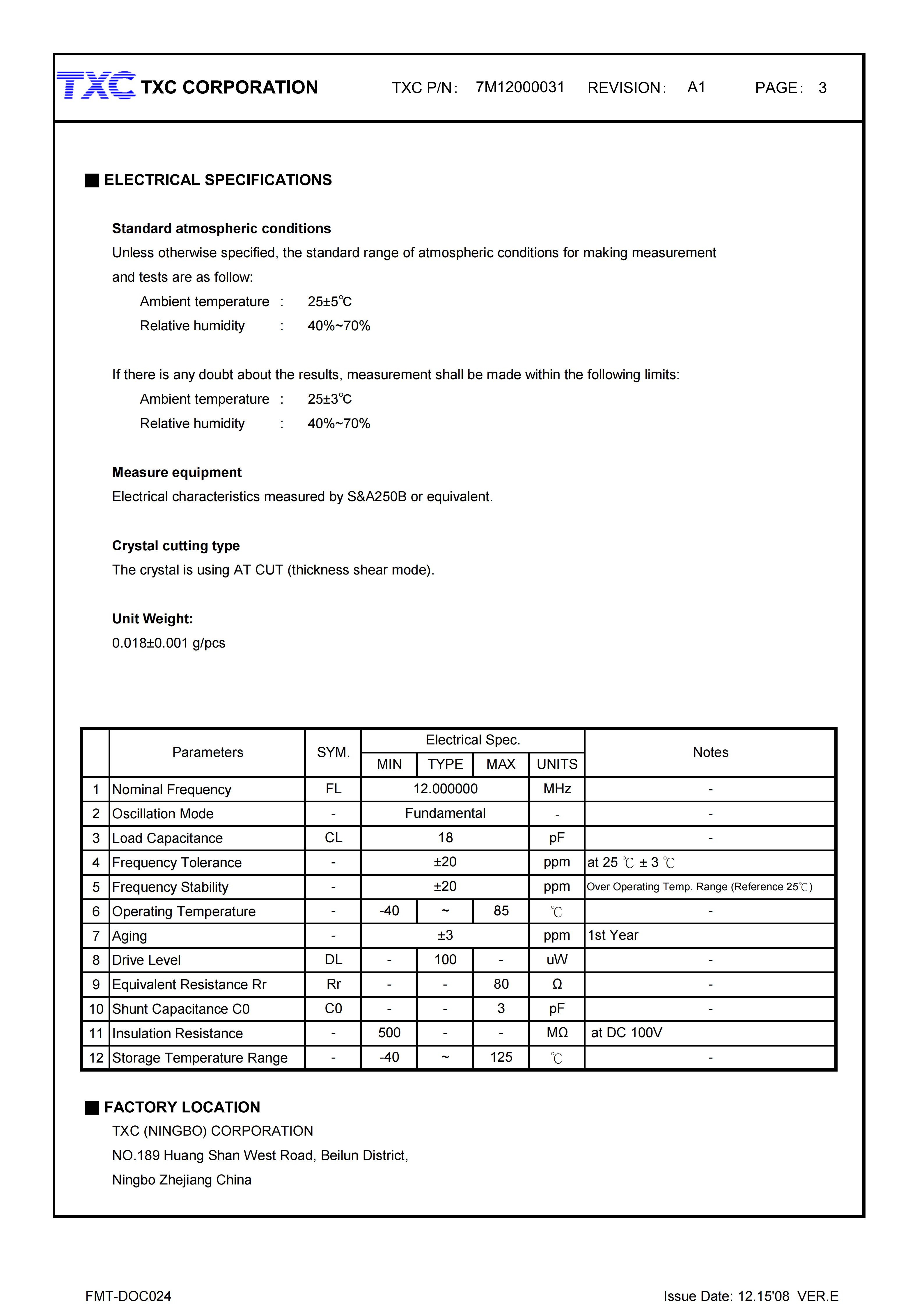 7M1203000312MHz18PF30PPM-20°C ~ 70°C加科電子TXC晶振