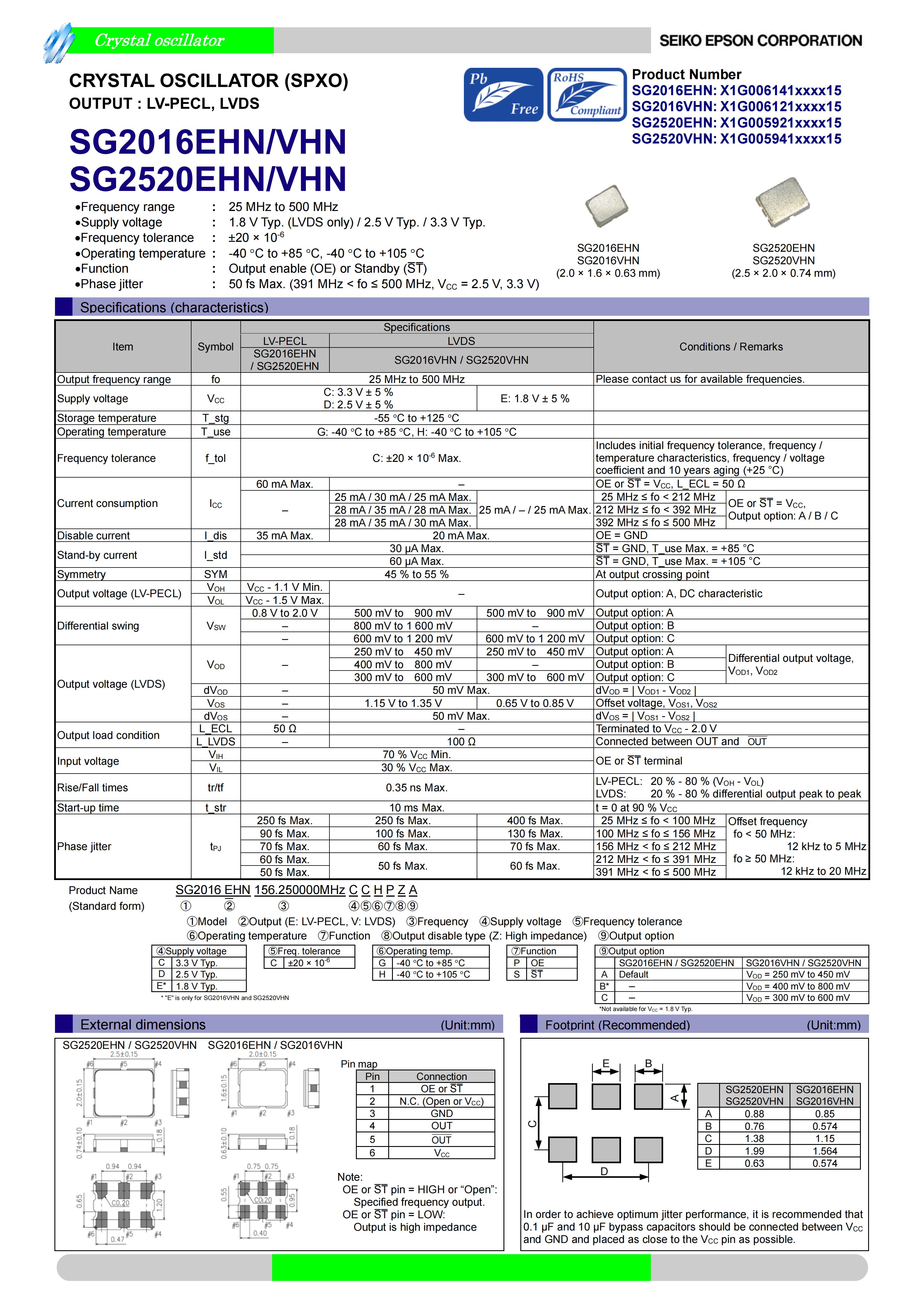 X1G006121001115SG2016VHNSG2016VHN 156.250000MHz CCHPZB156.25MHz加科電子愛(ài)普生EPSON
