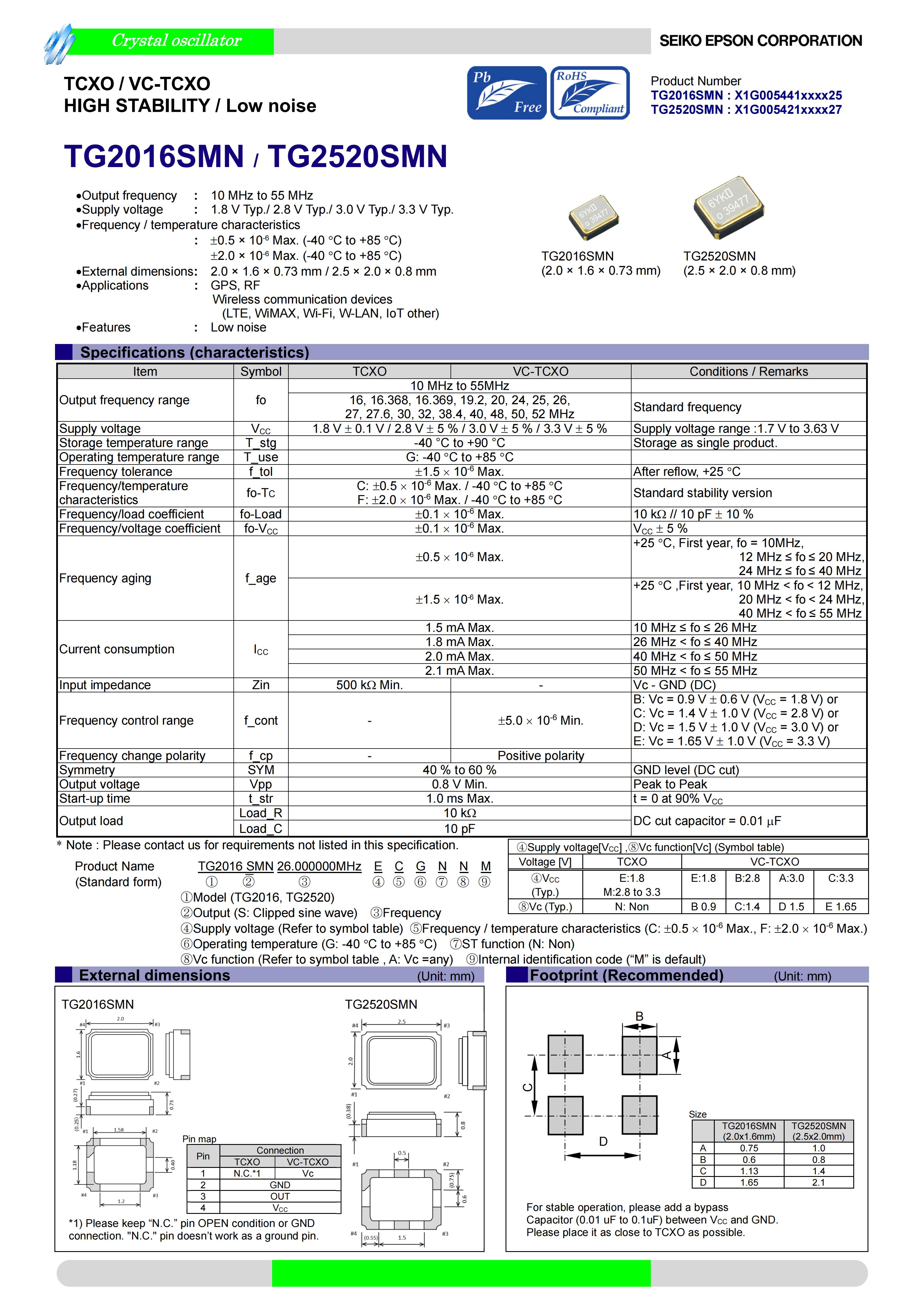 TG2016SMN 52MHz ECGNNMTG2016SMN52MHz1.7 to 1.9V1.5PPM-40°C ~ 85°C