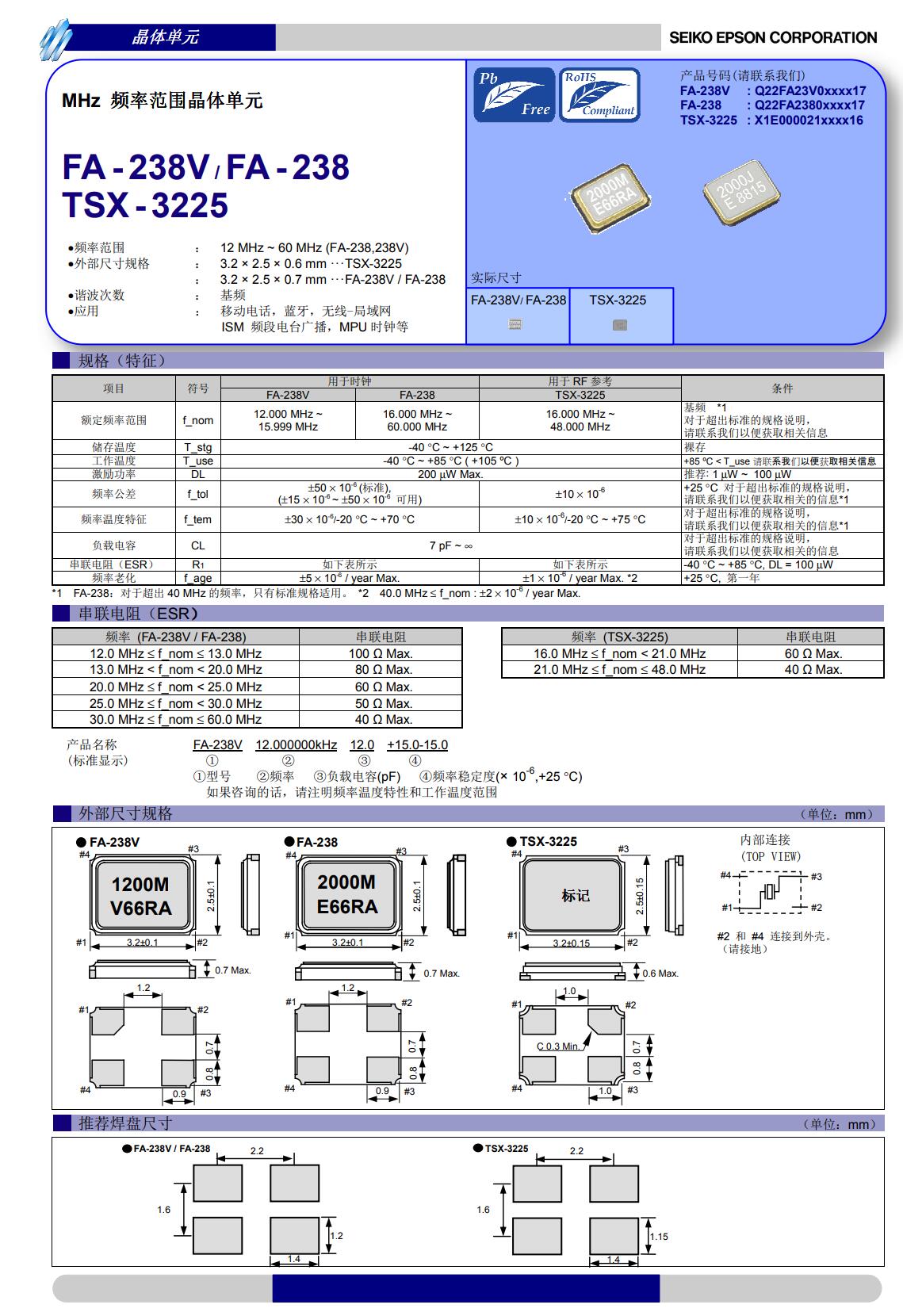 全球知名電子元器件制造商EPSON愛(ài)普生晶振推出全新小型化高頻晶振產(chǎn)品FA-238晶振系列憑借其超寬頻率范圍卓越的溫度穩定性及低功耗特性,成為移動(dòng)通信,藍牙,無(wú)線(xiàn)局域網(wǎng)(Wi-Fi),ISM頻段設備及微處理器(MPU)時(shí)鐘等領(lǐng)域的理想選擇,該產(chǎn)品的進(jìn)一步鞏固了愛(ài)普生EPSON晶振在精密計時(shí)領(lǐng)域的技術(shù)領(lǐng)導地位為5G物聯(lián)網(wǎng)(IoT)及工業(yè)自動(dòng)化等高速發(fā)展行業(yè)提供關(guān)鍵性支持,愛(ài)普生FA-238系列進(jìn)口晶振覆蓋12MHz至60MHz的寬頻范圍支持基頻(Fundamental Mode)輸出,可滿(mǎn)足高頻通信設備對時(shí)鐘信號的嚴苛需求其封裝尺寸僅為3.2×2.5×0.7mm較傳統晶振體積縮減約30%,尤其適合空間受限的便攜式設備與高密度電路板設計。