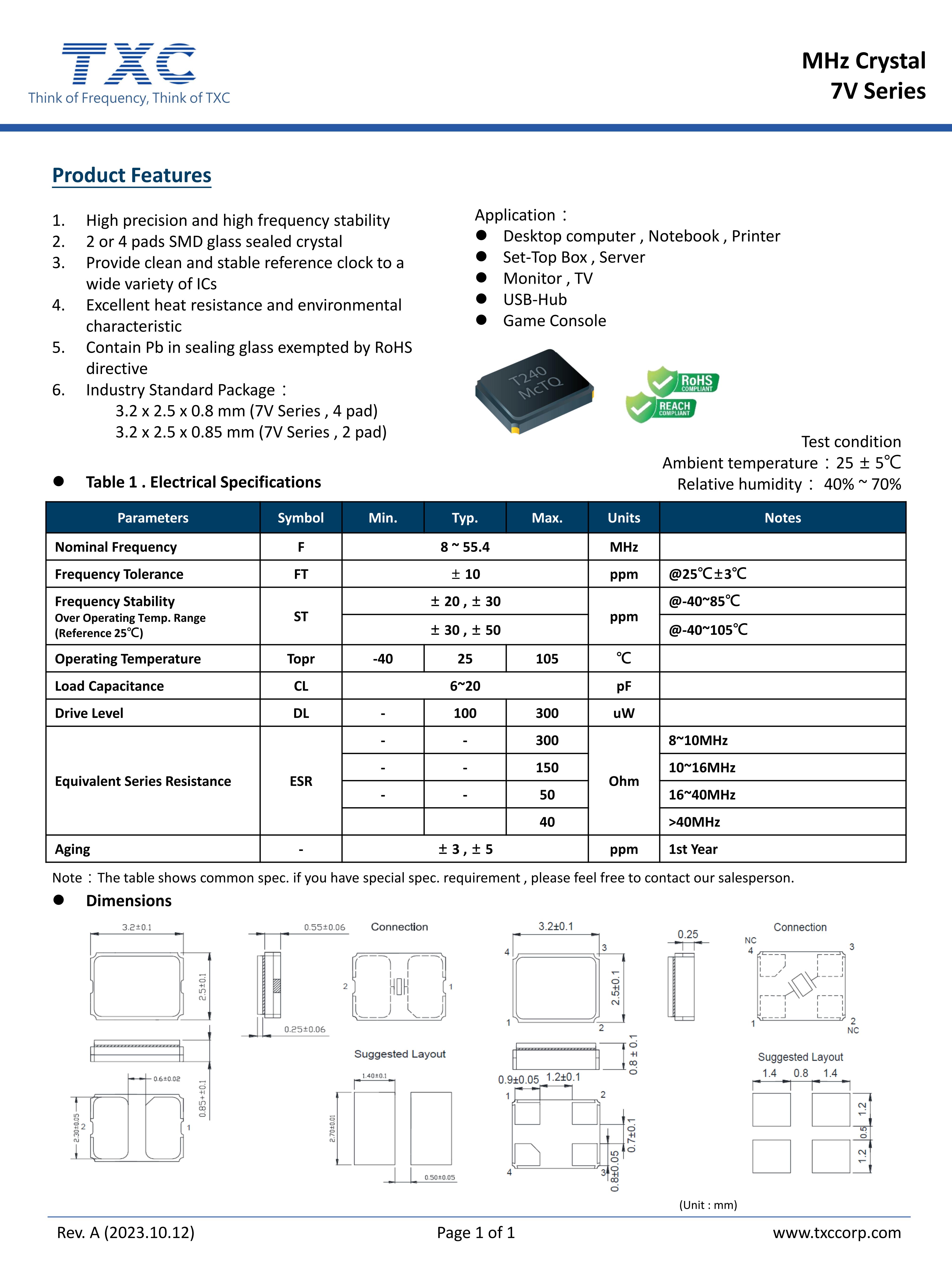 晶振作為頻率控制的核心元件,其重要性不言而喻,臺灣TXC晶振公司作為全球晶振行業(yè)的最大廠(chǎng)商,憑借其卓越的技術(shù)實(shí)力和豐富的產(chǎn)品線(xiàn),贏(yíng)得了全球電子產(chǎn)業(yè)的廣泛認可,今天加科電子特別推薦一款TXC晶振公司旗下的明星產(chǎn)品7V無(wú)源晶振這款專(zhuān)為消費類(lèi)電子產(chǎn)品設計的晶振正以其出色的性能引領(lǐng)著(zhù)電子產(chǎn)品的精準時(shí)代,7V無(wú)源晶振提供8MHz至55.4MHz的寬頻輸出范圍滿(mǎn)足不同應用場(chǎng)景的頻率需求,其頻率容差低至±20 x 10-6(25℃±3℃)確保了輸出頻率的精準度無(wú)論是數字電子還是消費產(chǎn)品這款晶振都能以其出色的穩定性為設備提供可靠的頻率基準。